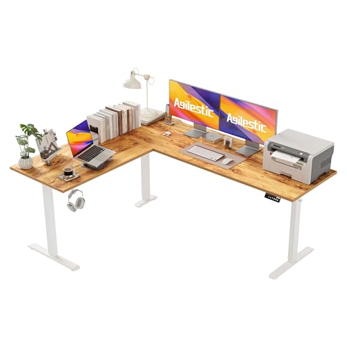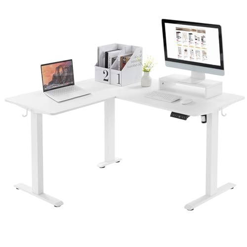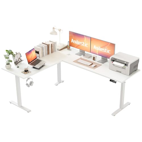 Agilestic elektriskt skrivbord, L-format 140 cm höj- och sänkbart skrivbord, sitt- och ståskrivbord för hemmabruk, ergonomiskt datorskrivbord med delad skivhöjd, vit