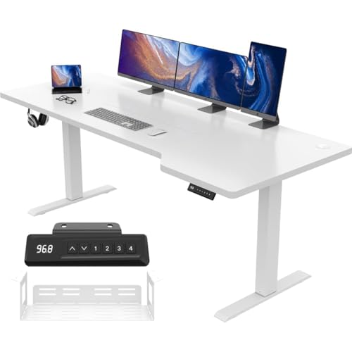 JUMMICO Justerbar höjd skrivbord vit 180 x 85 cm L-format skrivbord justerbar höjd elektrisk, ergonomi spelbord med krok (vit)