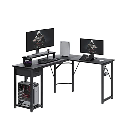 Coleshome Hörnskrivbord, L-format skrivbord med 4 lådor, Vändbart databord för kontor/sovrum (Svart, 120x70cm)