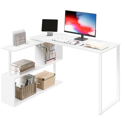 WOLTU Skrivbord i vitt L-format, hörnskrivbord med förvaringsutrymme, datorbord med 360 graders vridbar bokhylla för arbetsrum vardagsrum, kontorsbord PC laptopbord, 120 x 100 x 74 cm (B x D x H), MDF
