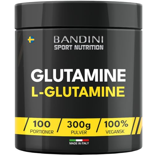 Bandini® Pure L-Glutamine Powder, aminosyra som är användbar vid högintensiv träning och för muskelmassa och styrka, 100% veganskt glutaminpulver, gymsport och träning, 300 g förpackning