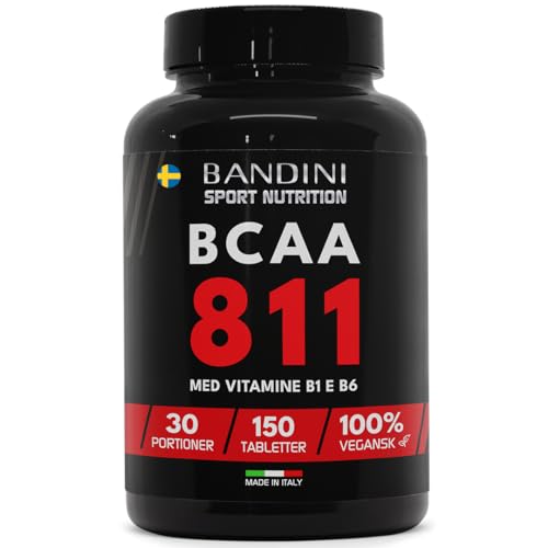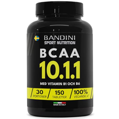 Bandini® BCAA 8.1.1 150 tabletter | BCAA 8:1:1 grenkedjiga aminosyror | L-Leucin, L-Isoleucin, L-Valine med vitamin B1 och B6 | Laktosfri, 100% Vegan | kosttillskott före och efter träning