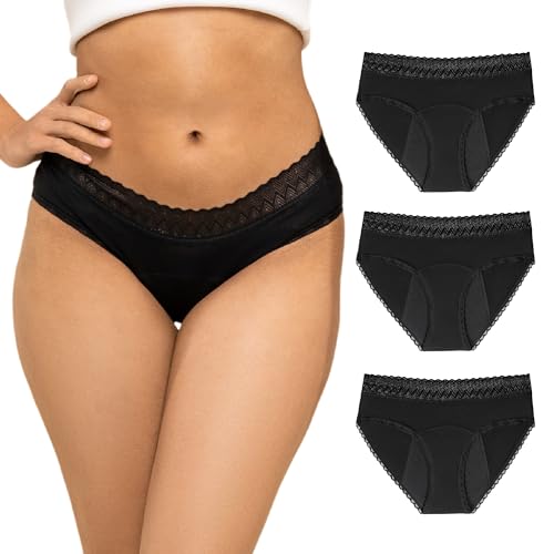 Set med 3 Svarta Menstruationsbyxor i Ekologisk Bomull - L - Tvättbart Absorberande Hygieniskt Skydd - Ekologiskt 4 Lager Anti-Läckagekläder för Linjal, Svart, L