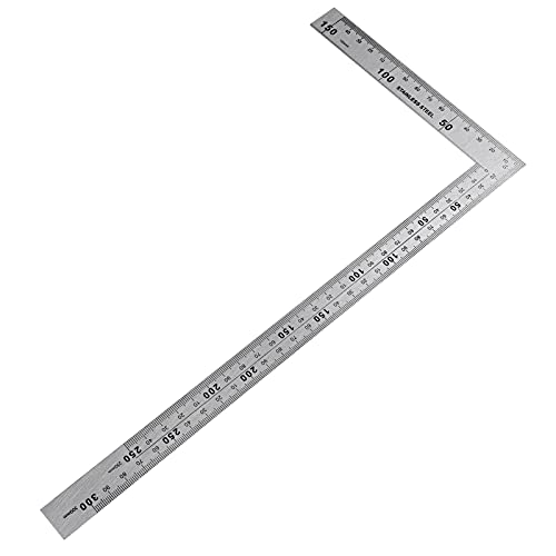 Oumefar Framing Square, Rostfritt Stål 90 Grader Höger Vinkel Linjal Mätning Square Tool Snicker Square, Metall L Shape Square Ruler(500mm*250mm)