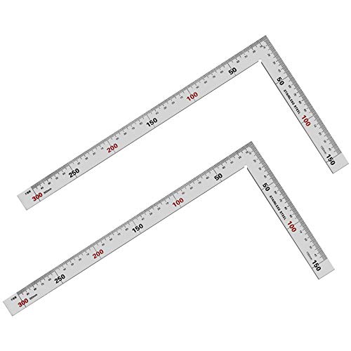 2 stycken 90 graders linjal rostfritt stål L-formad vinkellinjal metall fyrkantig linjal rostfritt stål L linjal dubbelsidig skala för snickare, ingenjörer, hantverkare, mässor, byggeld (300 mm x 150