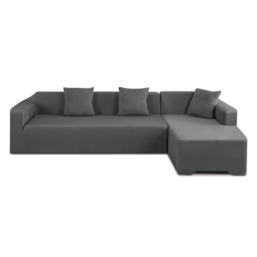 Eismodra Issmodra Sofföverdrag L-form, 3-sitsig, stretch, sittdyna, soffa, överkast, soffskydd, elastiskt överdrag för L-form, mörkgrå, schäslong (1 styck)