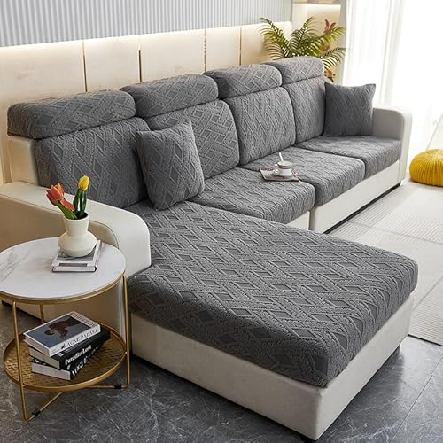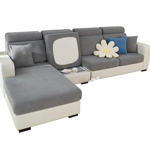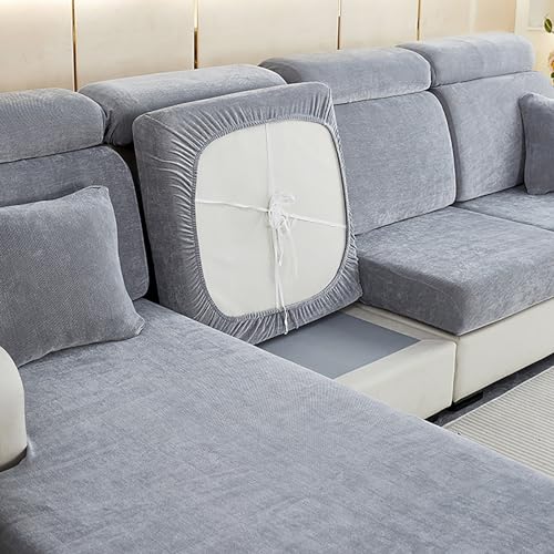 JUNLEBUYI Kuddfodral med hög stretch för soffsits, mjukt chenille-tyg, sofföverdrag, L-format kuddöverdrag, möbelskydd, reserv, i spandex (grå 1, XL, 4-sitsskydd)