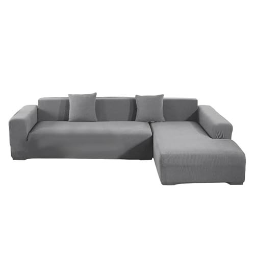 L-formad sofföverdrag, 3 + 2-sits hörn elastiskt sofföverdrag, hörnsofferskydd, universell L-formad sofföverdrag, stretch sofföverdrag, tvättbar, för vardagsrum, sovrum(grå)