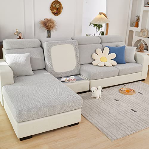 JUNLEBUYI Kuddfodral med hög stretch för soffsits, mjukt chenille-tyg, sofföverdrag, L-format kuddöverdrag, möbelskydd, reserv, i spandex (grå 1, XL, 1-sitsskydd)