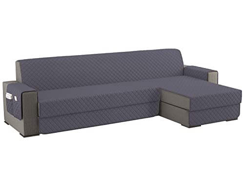 sevi's sofföverdrag, L-form, 250 cm, fåtöljskydd, vattentätt, vändbart, med dyna, lämpligt för alla soffor, grått