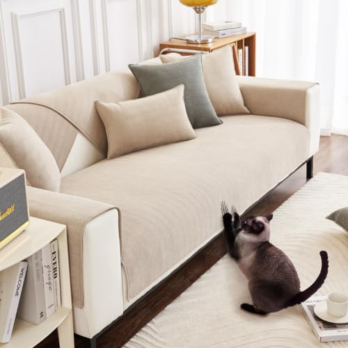 Lättgående sofföverdrag, L-format sofföverdrag, soffskydd, soffskydd, möbelskyddsmatta för husdjur, hund, katt (X-Large, kamel/kamel)