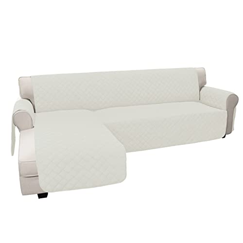 Lättgående sofföverdrag L-format sofföverdrag sektionssoffa överdrag schäslong vändbart möbelskydd skydd för husdjur barn hund katt (liten, elfenben/elfenben)