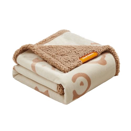 Feandrea vattentät hundfilt, Sherpa Fleece, Djurtäcke för små och medelstora hundar, katter, 127x101cm, L, Maskintvättbar dubbelsidig sofföverdrag, Beige PPB050K01
