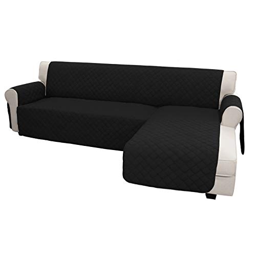 Lättgående L-Format Sofföverdrag - Soffskydd Med Sektioner, Schäslong, Vändbart - Möbelskydd För Husdjur, Barn, Hund, Katt (Liten, Svart/Svart)