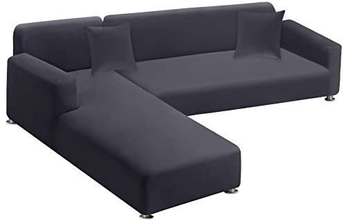 LA MEACK Soffskydd i sektioner, 2-delar, mjukhet, L-format sofföverdrag, superstretch, L-typ, sofföverdrag med 2 st örngott, sofföverdrag, 3-sits + 3-sits möbelskydd (mörkgrå)