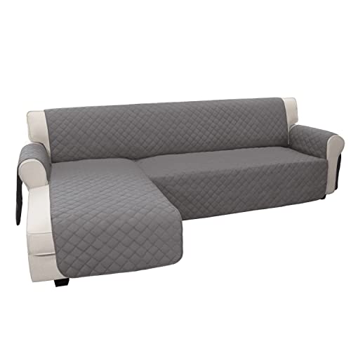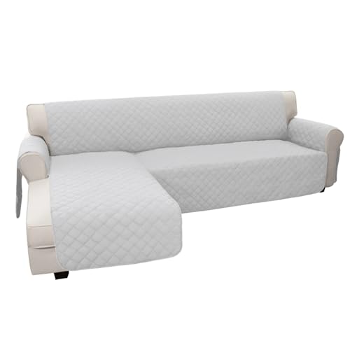 Easy-Going Sofföverdrag, L-format soffskydd, sektionellt soffskydd, schäslong, skydd, vändbart soffskydd, möbelskydd för husdjur, barn, barn, hund, katt (stor, ljusgrå/ljusgrå)