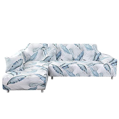 Jianyana Sofföverdrag L-formad stretch spandex polyester tyg soffskydd stretch soffskydd + 2 st örngott för soffa (tryckt 09)
