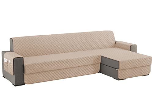 sevi's sofföverdrag, L-form, 300 cm, fåtöljskydd, vattentätt, vändbart, med dyna, lämpligt för alla soffor, beige
