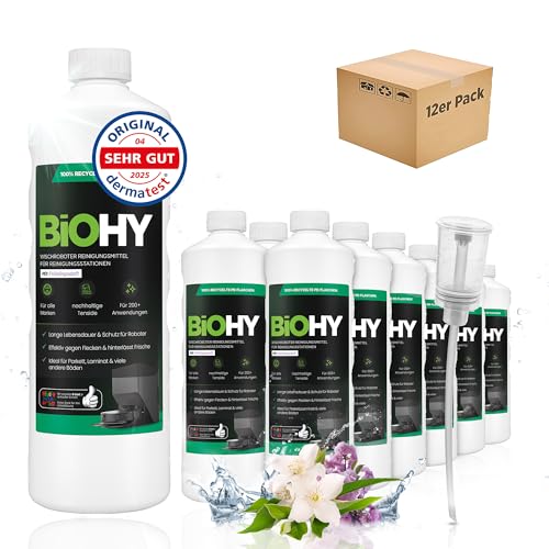 BiOHY Mopprobot rengöringsmedel med fräsch vårdoft (12 x 1l flaska) + doser | Särskilt utvecklad för rengöringsstationer | Förlänger livslängden för sugstationen (Wischroboter Station Frühling)