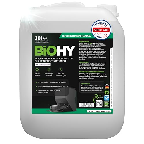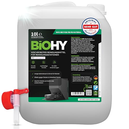 BiOHY Mopprobot rengöringsmedel med fräsch vårdoft (10l burk) | Särskilt utvecklad för rengöringsstationer | Förlänger livslängden för sugstationen (Wischroboter Station Frühling)