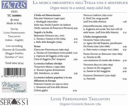 Luigi Ferdinando Tagliavini - La Musica Organistica Nell'italia Una E Molteplice CD