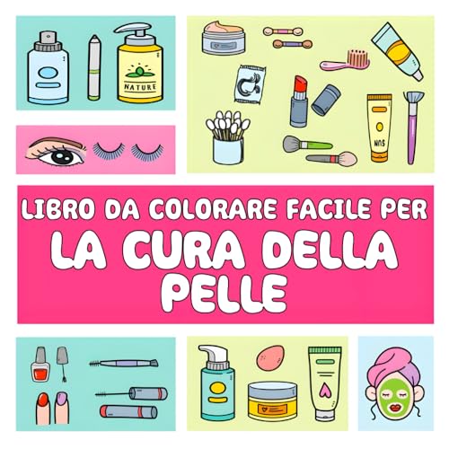 Libro da colorare Cosmetici facile: Illustrazioni semplici e decise di prodotti per la cura della pelle per ragazze, adolescenti, donne e bambini