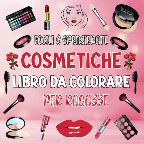 Cosmetiche Libro Da Colorare Per Ragazze ( Facili & Spensierate ): Disegni di moda per il relax con articoli cosmetici luminosi, prodotti per il trucco e la cura della pelle per adulti e bambini