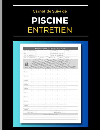 Carnet d'Entretien: Piscine: Suivi de la Qualité et Analyse de l'Eau, Maintenance | Registre Sanitaire | cf Code de la Santé Publique (CSP) | 120 Pages | 21.6 x 27.9 cm