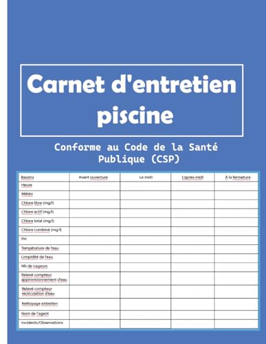 Carnet d'entretien piscine: Registre sanitaire des eaux de piscine: Conforme au Code de la Santé Publique (CSP)