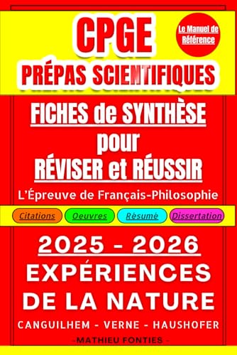 CPGE Prépas Scientifiques : Fiches de Synthèse pour Réviser et Réussir l’Épreuve de Français-Philosophie: 2025 - 2026 : « Expérience de la Nature » : Canguilhem - Verne - Haushofer