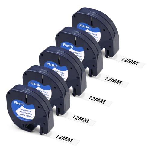 Etikett Orison kompatibel med Dymo Letratag Refill 91221 91201 91331 svart på vit plast etikettband för Dymo Label Maker Refills LT-100H LT-100T XR QX50 200B, 10-pack