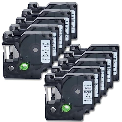 Doree 10-pack, kompatibel etiketttejp 45013, S0720530, 12 mm x 7 m, svart, på vit för DYMO LabelManager 160, 210D, 220P, 280, 350D, 360D, 400, 450, DYMO LabelPoint 100, 150, 20 250300