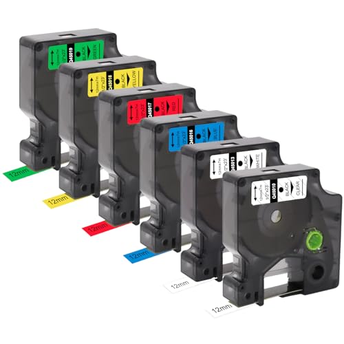 Gigmeta Set med 6 compatible with Dymo D1-band 12 mm x 7 m compatible with Dymo Labelmanager PNP/160/210D/280/350/420P/450D/50TS, D1 45013 45017 45018 45018 45019