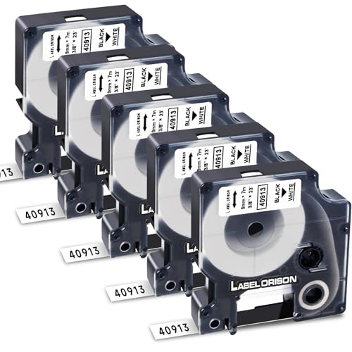 Etikett Orison 40913 9 mm, kompatibel med Dymo Label Maker, påfyllningar för Dymo D1 etiketttejp, LabelManager 100 160 200 210D 280 500TS 420P 360D, svart på vitt, (9 mm x 7 m), 5 x