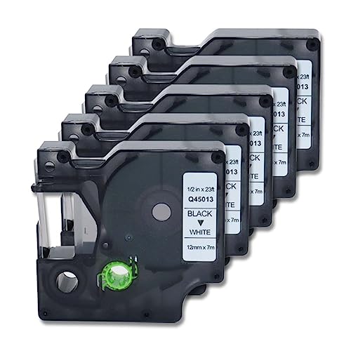 Doree 5-pack kompatibel etiketttejp 45013, S0720530, 12 mm x 7 m, svart, på vit för DYMO LabelManager 160, 210D, 220P, 280, 350D, 360D, 400, 450, DYMO LabelPoint 100, 150, 200 250,300
