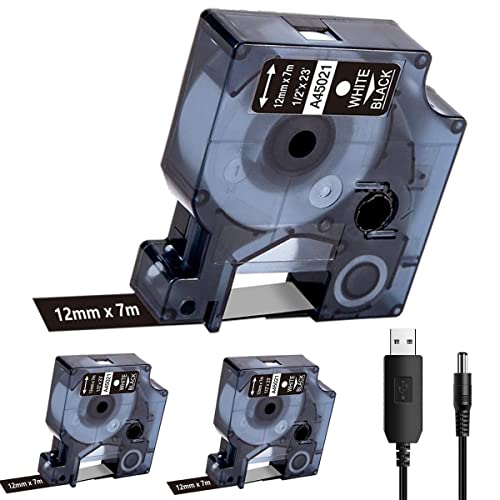 Acmerota 45021 Etikettbandbyte för Dymo D1 Vit på svart etikett 12mm x 7m 45013 A45013 S0720530 Tape för Dymo LabelManager 100 150 160 250 280 210D 360D 260P 420P 420P 420P 50D 0 År