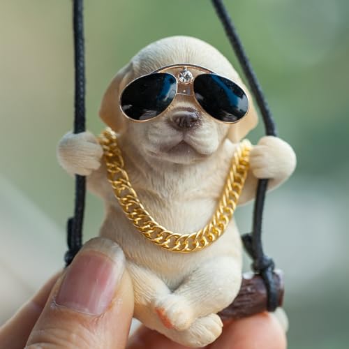 Söt svängande labrador bilhänge, gul labrador bil backspegel hängande prydnad hund bil inredning tillbehör födelsedagspresent för familj vänner födelsedag
