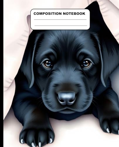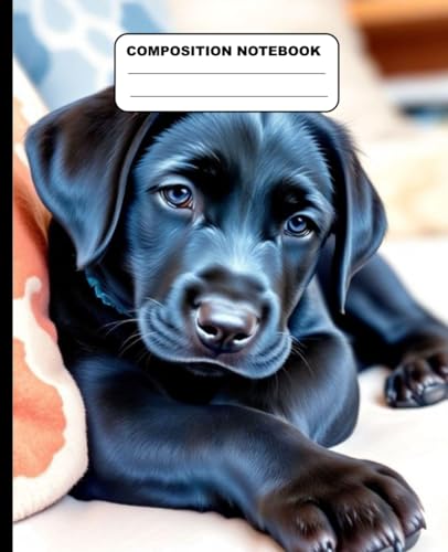 Cute Black Labrador Puppy Relaxing At Home Wide Ruled Composition Notebook: Dog Themed Notebook 7.5 Inches x 9.25 Inches 110 Pages