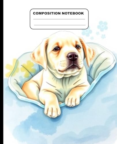Cute Labrador Puppy In Dog Bed Wide Ruled Composition Notebook: Dog Themed Notebook 7.5 Inches x 9.25 Inches 110 Pages