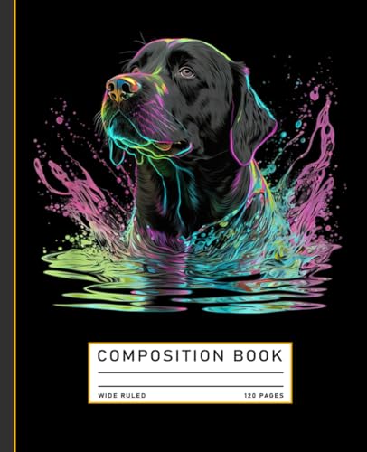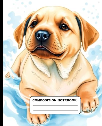 Super Cute Labrador Puppy Swimming Wide Ruled Composition Notebook: Dog Themed Notebook 7.5 Inches x 9.25 Inches 110 Pages