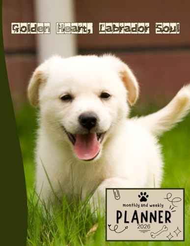Golden Heart, Labrador Soul | 2026 Planner Puppy Labrador Retriever Dog: Dated Weekly and Monthly Page Views With Space For Notes | From Jan to Dec | ... All Holiday | Perfect For puppies Lover