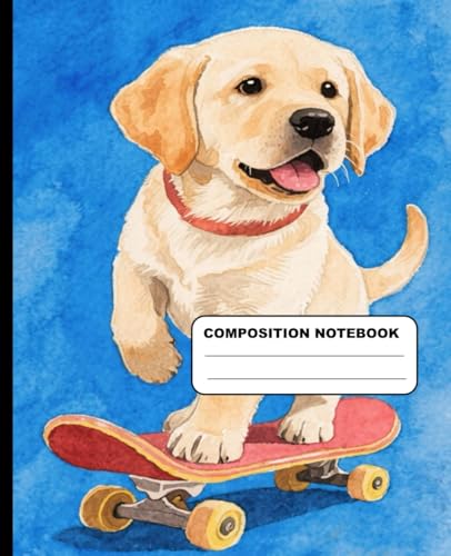 Super Cute Labrador Puppy On A Skateboard Wide Ruled Composition Notebook: Dog Themed Notebook 7.5 Inches x 9.25 Inches 110 Pages