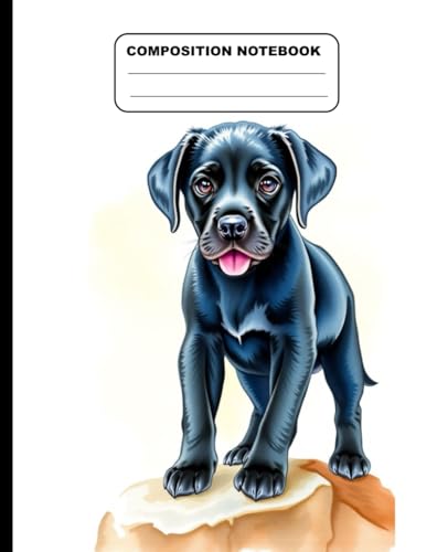 Cute Black Labrador Puppy Standing On A Rock Wide Ruled Composition Notebook: Dog Themed Notebook 7.5 Inches x 9.25 Inches 110 Pages