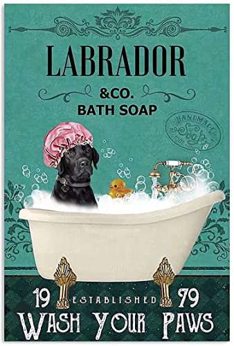 Svart labrador metall plåtskylt Black Labrador Co. badtvål rolig affisch café bar vardagsrum badrum kök hem konst väggdekoration plakat gåva