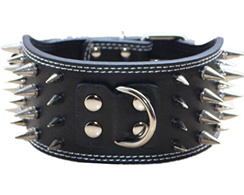 haoyueer 7,6 cm (3 tum) skarpt dubbat läder hundhalsband för träning, sport, promenader, medium, large, XL, för pitbull, labrador, boxer (L, svart)