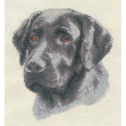 PANNA svart labrador korsstygnssats, 17,5 x 23,5 cm