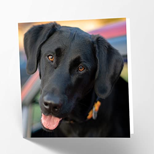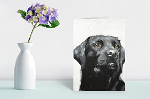 Svart Labrador-kort, gratulationskort med målning av ett Black Lab av James Coates, A5-storlek, blank insida