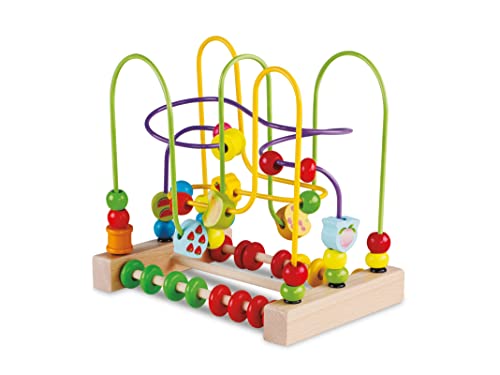 Teorema Giocattoli - Montessori pedagogisk labyrint i trä, leksak för barn med färgglada motorkurvor och glidande pärlor, 40561