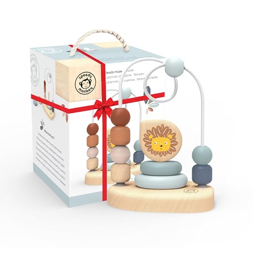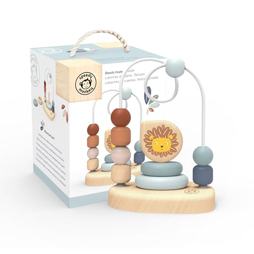 Speedy Monkey lejontema pärla labyrint babyleksaker | mjuka färgade pärlor | uppmuntrar fingerfärdighet och hand-öga-koordination – | leksaker för 1 år gammal pojke | gåvor för 1 år gammal flicka |