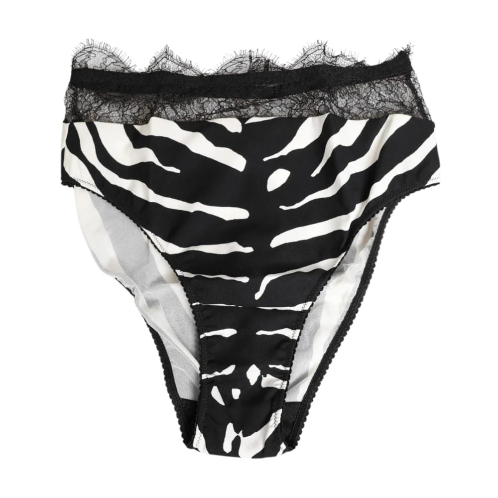 Dolce & Gabbana, Underkläder , Dam, S, Spandex, Zebra Print Lace Trim High Underwear